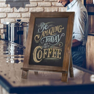 Bảng đen menu khung gỗ màu nâu treo tường dùng cho quán ăn, quán cafe, trà sữa, nhà hàng, homestay