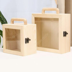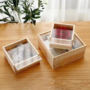 Hộp gỗ đựng phụ kiện, hộp gỗ quà tặng nắp gỗ, nắp mica trong suốt, hộp gỗ màu óc chó
