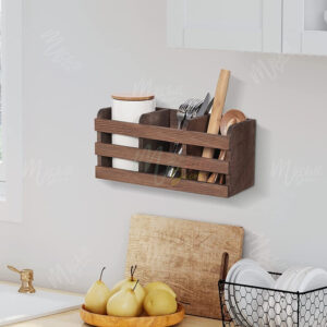 Kệ để đồ nhà bếp bằng gỗ màu nâu óc chó, giá treo đồ nhà bếp, trang trí decor
