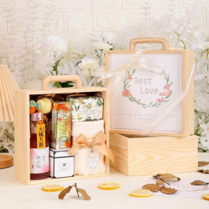 Hộp quà tết, hộp gỗ nắp mica có tay cầm, hộp quà cao cấp, Hộp gỗ nắp trượt đa năng
