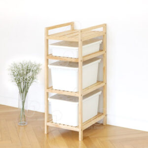 Size 3 tầng: 34,6cm x 43,5cm x 65cm (khoảng cách tầng dưới 26cm, tầng trên 18cm)