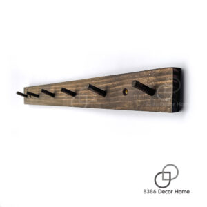Kệ Móc Treo Đồ, Móc Treo Quần Áo Gắn Tường màu nâu rustic (gỗ thông sơn màu gốc nước)