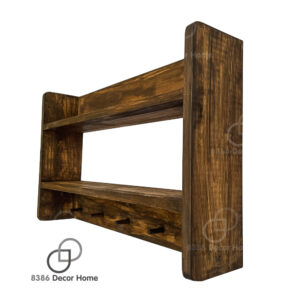 Kệ treo tường, để bàn đa năng decor trang trí kèm móc treo quàn áo phụ kiện màu nâu rustic (gỗ thông sơn gốc nước)